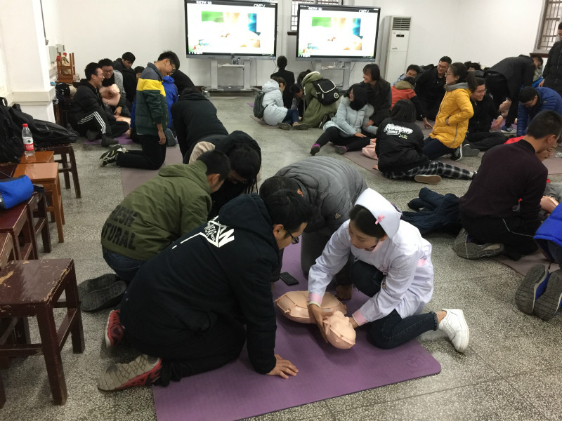 陈晋书记在发言中谈到,掌握必要的急救知识是对每一个实验室操作者的最基本要求,他希望同学们通过此次知识培训和实际模拟操作学好这门课程,以便在关键的时候知道如何挽救他人生命,同时也能为自己、为同学、为家人提供更好的保护。最后,他对第一批参加急救培训的两个班的同学表达了祝贺,也对参与此次教学的院长和老师们表示了衷心的感谢。