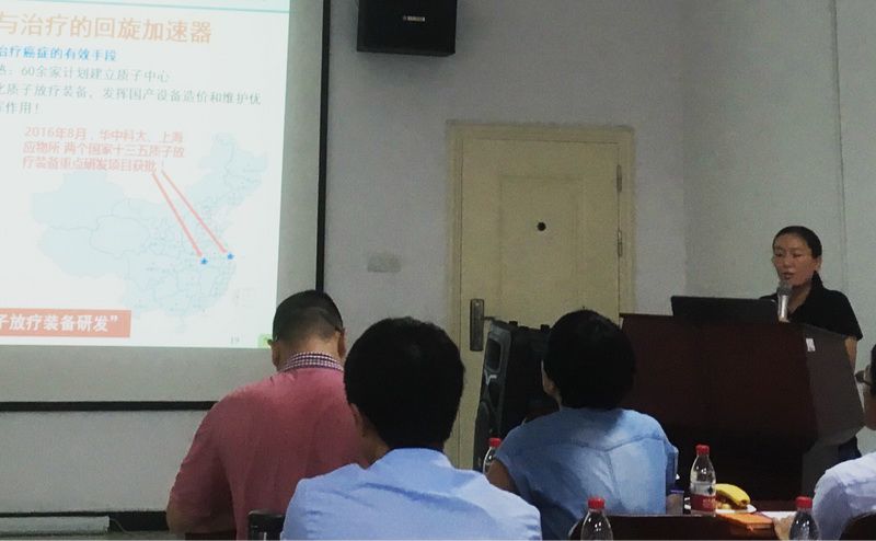 谭萍介绍了研究所发展概况。2001年,樊明武院士从无到有建立加速器学科,在华中科技大学培养了第一批该学科年轻的教师及学生,在2005年以后队伍逐渐壮大,成立了电磁理论及带电粒子研究中心,到2014年成立了应用电磁研究所。研究所成立以来,首先确立了基本的目标,即服务国家战略,瞄准学术前沿,面向社会经济,因此研究所不仅注重科研,也对社会上经济发展提供了一些帮助。研究所成立以来最成功的一件事是质子治疗的申报。项目在申报过程中得到了科技部、湖北省的大力支持,在承担了这一国家项目后,获批的研究经费为研究所的发展创造了一定的基石。现在多个项目研发团队相互配合,正在努力推动项目进展。